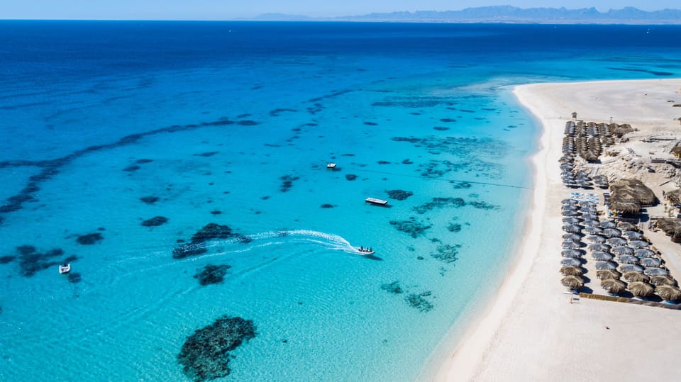 Escape the hustle and bustle of Hurghada with a breathtaking day trip to Mahmya Island. This pristine paradise, nestled within the Giftun Island National Park, offers a unique blend of relaxation and adventure. Your journey begins with a convenient pickup from your resort in Hurghada. Embark on a scenic hour-long sail aboard one of two luxurious Mahmya boats, arriving at the island's picturesque shores. Mahmya, meaning "Protected Area" in Arabic, is renowned for its commitment to environmental conservation. To safeguard the vibrant coral reefs and marine life, boats anchor at designated buoys, and smaller boats transport you to the island, minimizing environmental impact. Once ashore, immerse yourself in a world of aquatic wonders. Snorkel amidst a kaleidoscope of colorful fish and explore the stunning coral formations. Relax on the pristine white sand beach, engage in a friendly game of beach volleyball, or simply soak up the sun. For the little ones, Mahmya Island offers an exciting Aqua Trampoline, ensuring endless fun. Stay connected with complimentary Wi-Fi access available in the lounge area. Indulge in a delectable lunch at the island's restaurant, featuring a mouthwatering selection of seafood and Italian specialties. Later, unwind with refreshing drinks at the bar while enjoying the breathtaking island views. As the day draws to a close, you'll embark on a relaxing sail back to Hurghada. A comfortable transfer awaits, delivering you back to your hotel for a peaceful overnight stay.