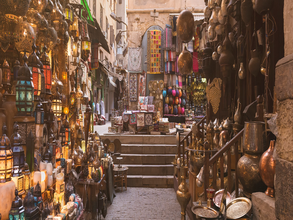Explore the narrow lanes filled with unique items like woodwork, glassware, leather, perfumes, fabrics, and pharaonic souvenirs.