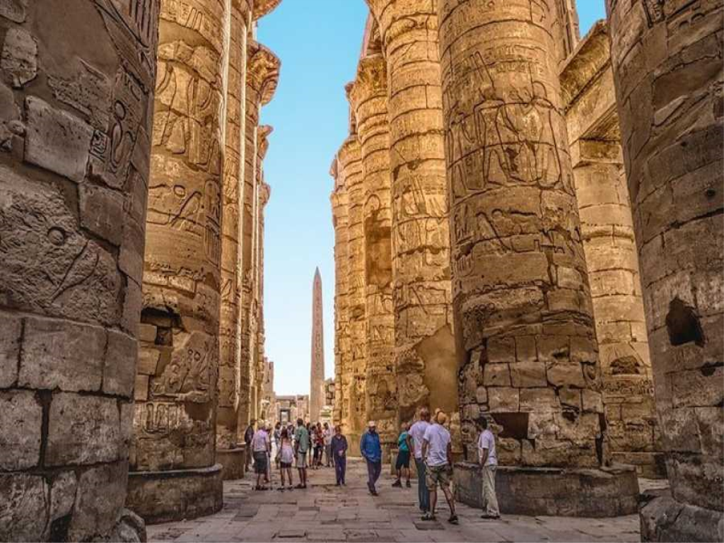Explore the Hypostyle Hall, a forest of giant stone pillars, larger than Notre-Dame Cathedral.